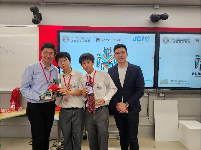 本校隊伍(3A 洪揚、張文龍、吳偉斌) 於教師區曜祺的帶領下,在IVE(李惠利) 參加校際Robot Fight - VEX IQ Robot Competition,獲得全場總殿軍。